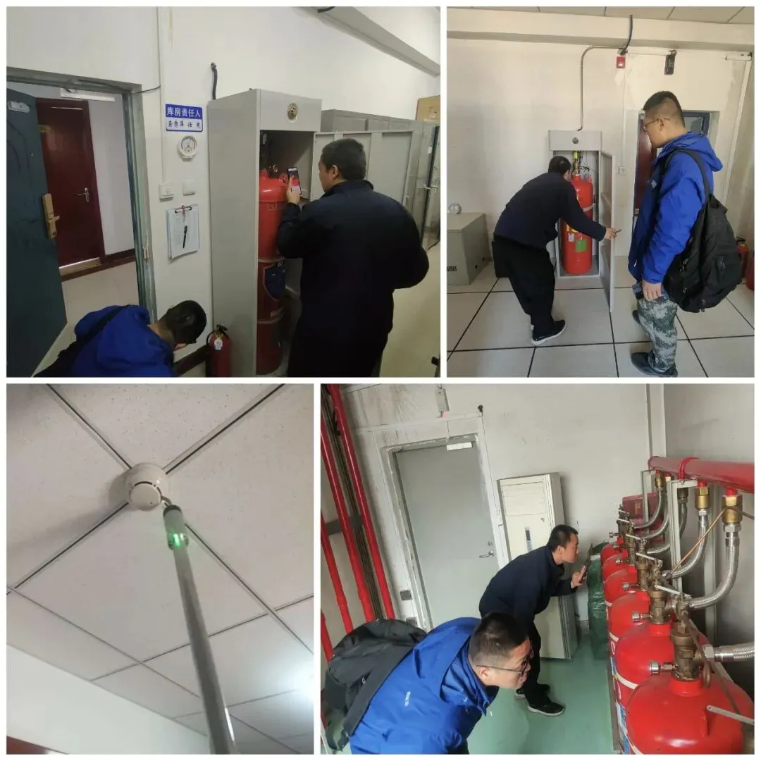 本次消防维保聚焦档案库房、办公区域、机房等重点部位,按照“全覆盖、无死角”原则,工作人员对灭火器的压力、有效期及外观等进行逐一检查,对各楼层的火灾探测器、手动报警按钮及消防联动控制器等火灾自动报警系统进行全面检测与联动测试,确保设备响应及时、运行正常。