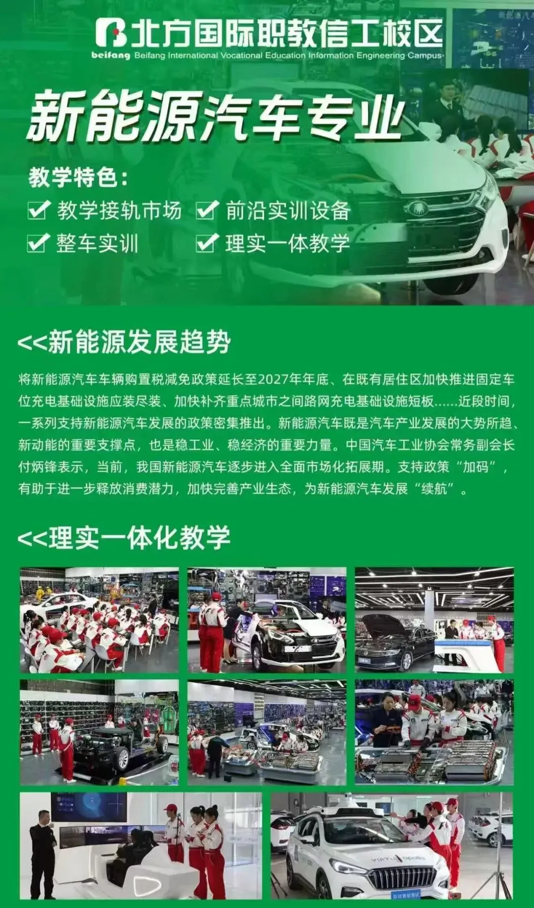 >石家庄北方国际职教信工校区新能源汽车专业招生报名了!!!