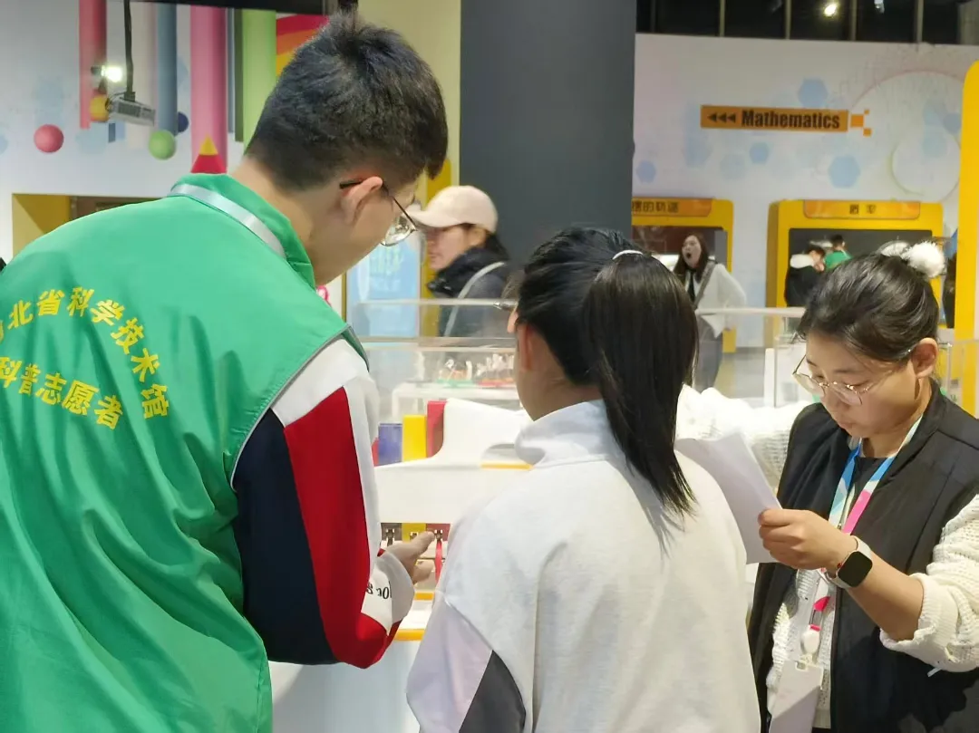 面对寒假期间展区人流密集的挑战,志愿者们团队协作、耐心引导,高效应对高峰时段多名观众同时提问的复杂场景。四天时间,他们累计服务观众近千人次,以认真的态度和专业的表达赢得科技馆工作人员与参观群众的一致好评。