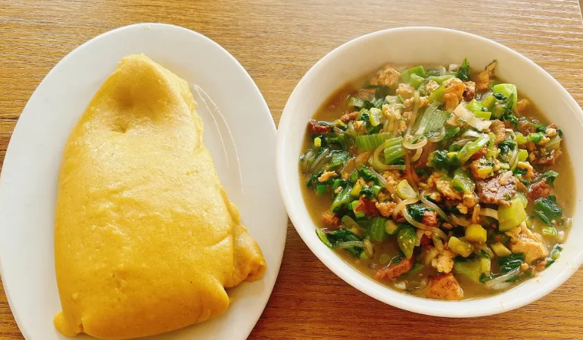 这里的黄糕,不是蛋糕,是主食。口感像年糕,但更劲道,配上烩菜,那滋味,绝了。
