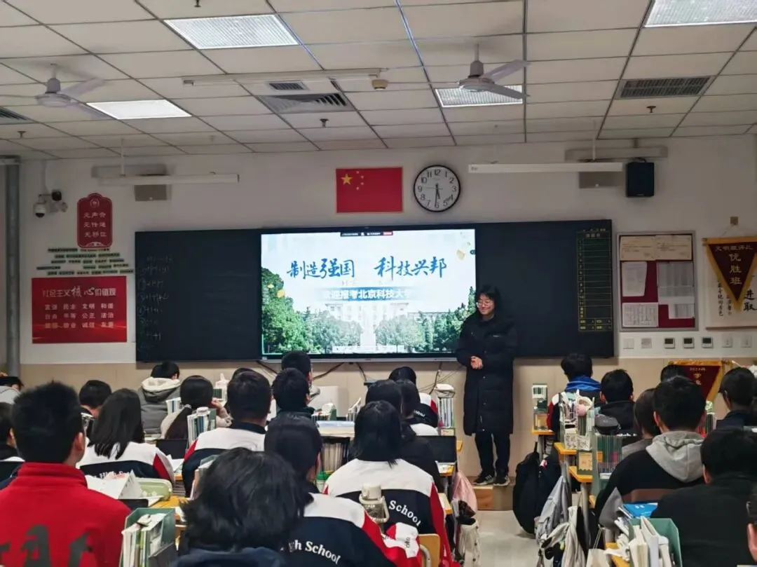 在石家庄一中的寒招专场中,学长学姐学习经验分享环节干货满满、氛围热烈。作为从石一考入北科的过来人,学长学姐们结合自身高三备考实战与大学学习感悟,从学科复习、时间规划、心态调整、应试技巧四大维度展开深度分享。