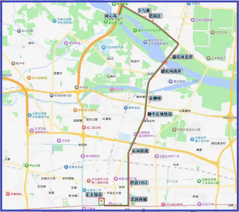1、起止点:正太饭店--滹沱河艺术生态岛.