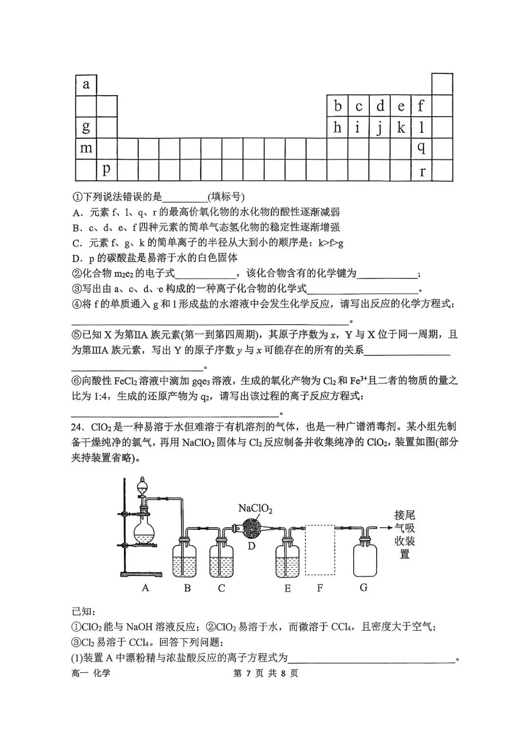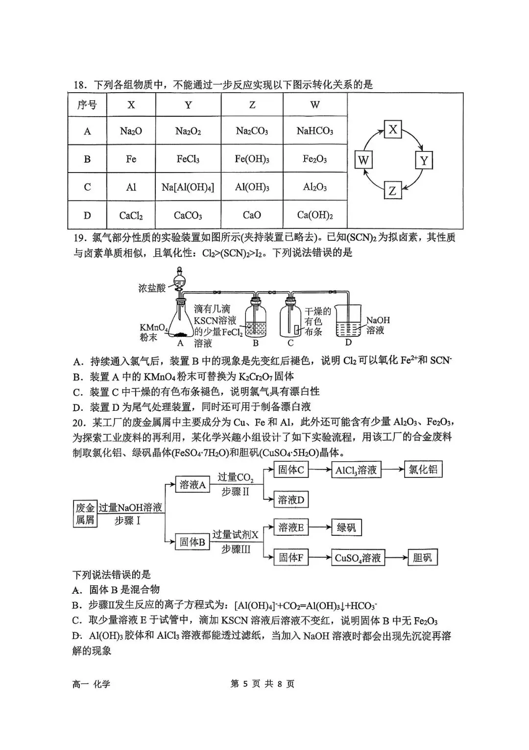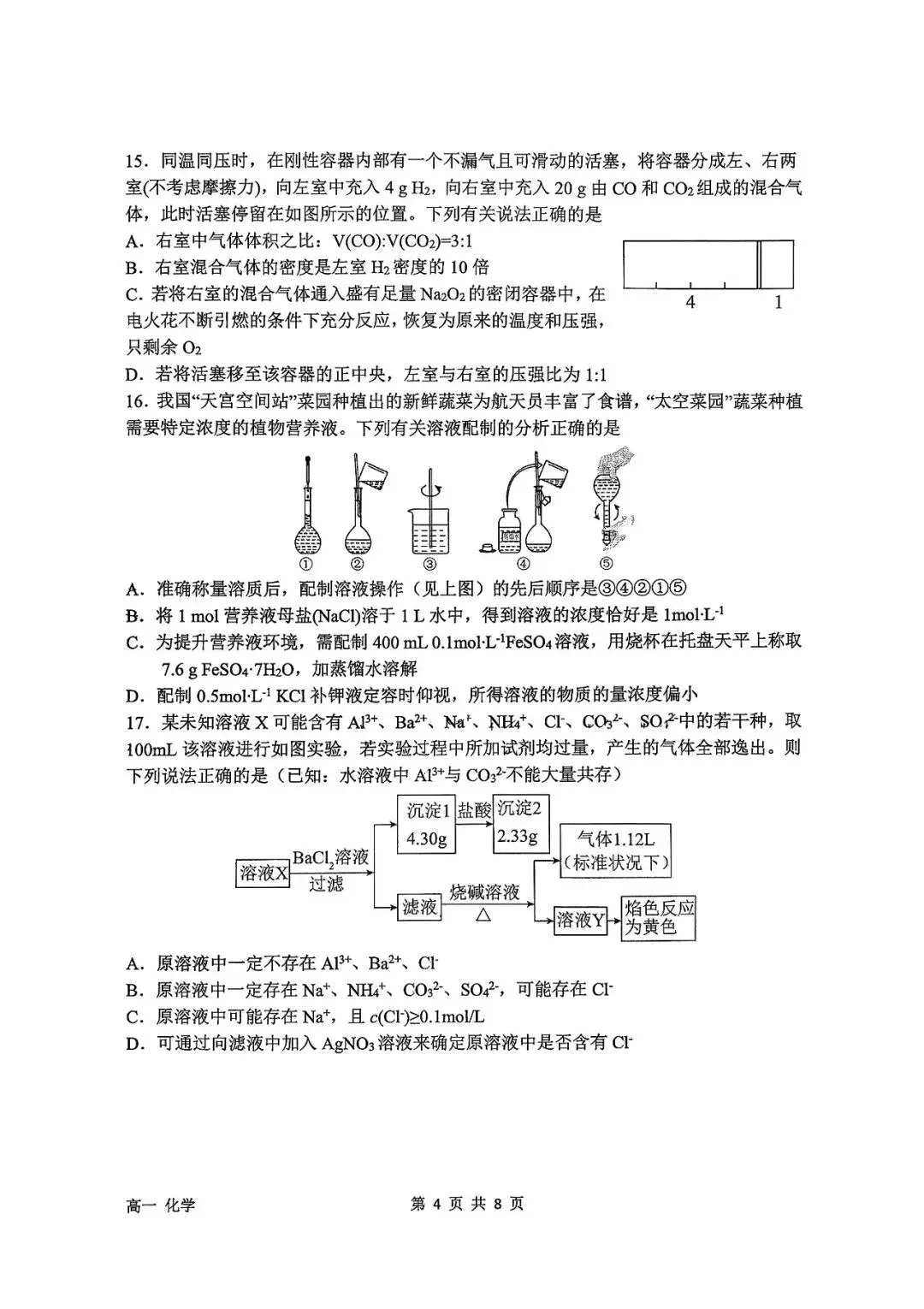 石家庄二中25-26年高一上册期末化学真题