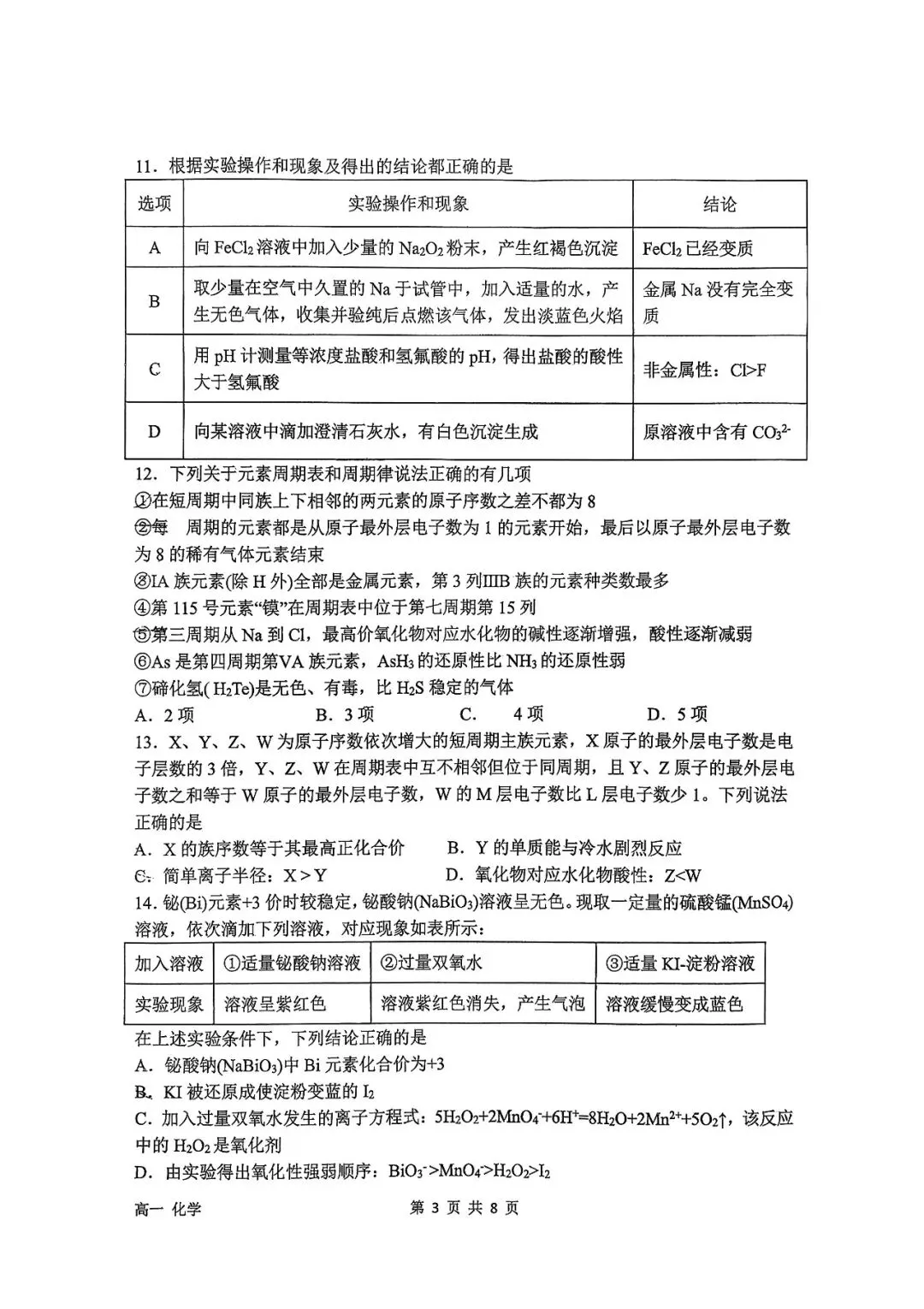 >石家庄二中25-26年高一上册期末化学真题