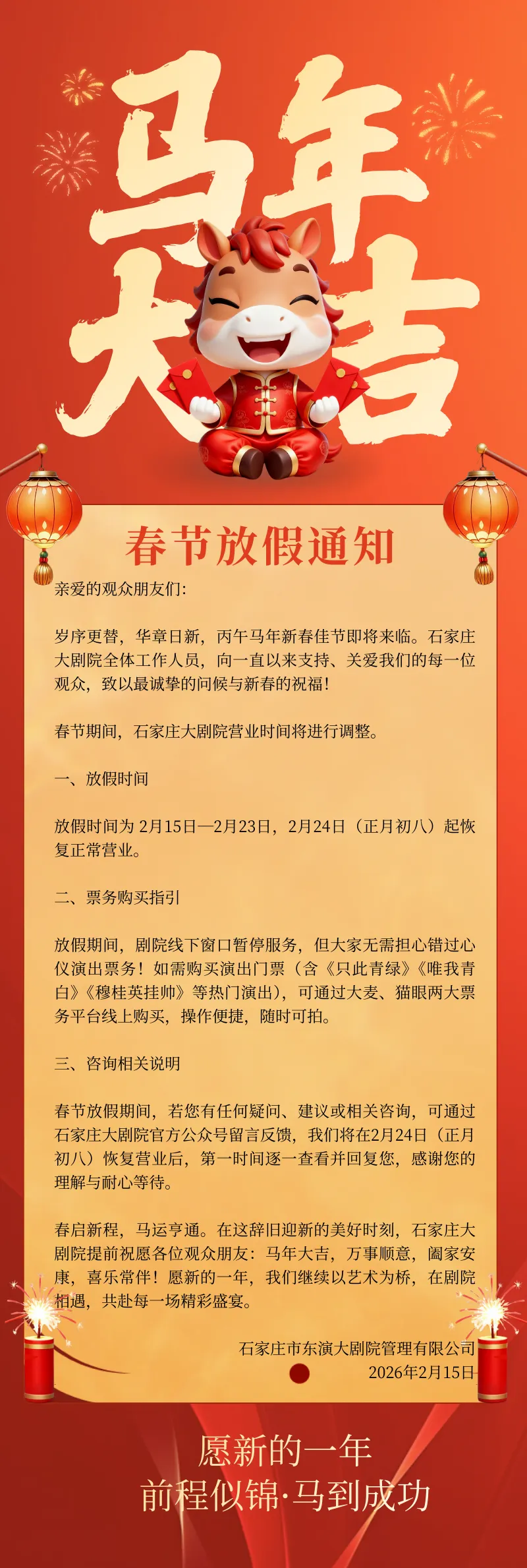 >石家庄大剧院春节放假通知