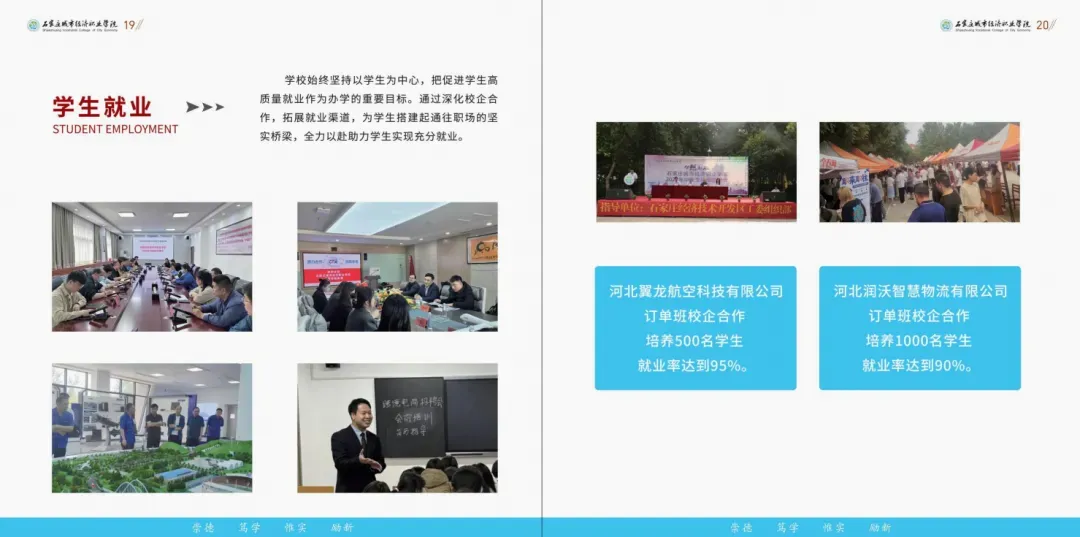石家庄城市经济职业学院始建于2001年,是经河北省人民政府批准设立、教育部备案,具有独立颁发国家承认学历证书资格的全日制民办高等职业院校,学校致力于培养高素质技术技能型人才,为学生提供良好的学习和实践平台,力争让每一位毕业生都带着工作经验进入社会。
