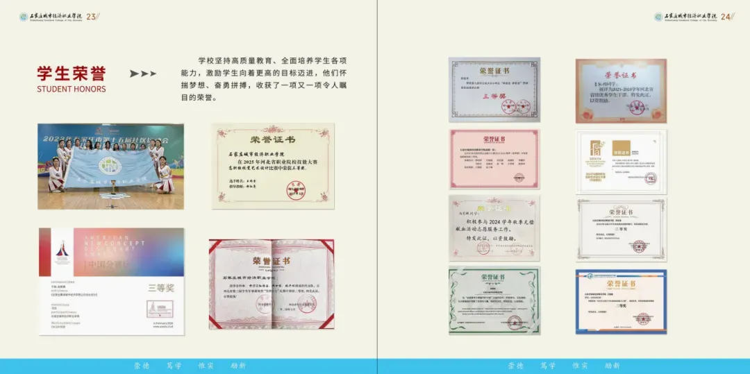 学生学业期满成绩合格、符合毕业条件的,颁发经教育部学历电子注册、石家庄城市经济职业学院具印的“普通高等学校专科学历证书”。