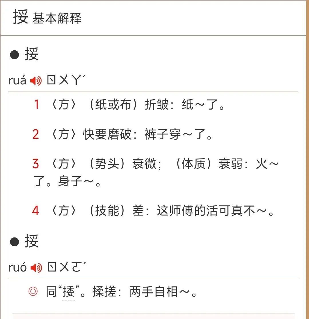 时代变了,物资丰富了,人们的爱惜物体的观念也在发生变化。衣服还没来得及挼,估计就被丢弃了。所以,这个挼如今也是一位落寞的字了。