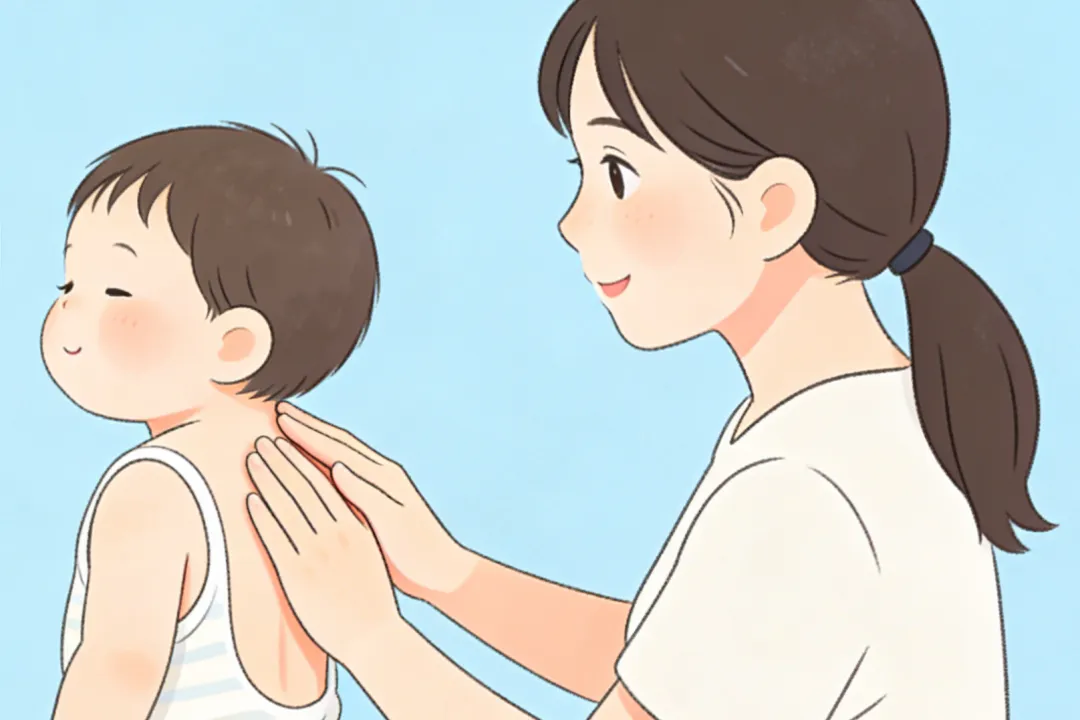 晚上睡前,家长可以给孩子做简单的抚触。以肚脐为中心,顺时针轻柔按摩腹部100-200下,或者捏捏脊,有助于调理脾胃。