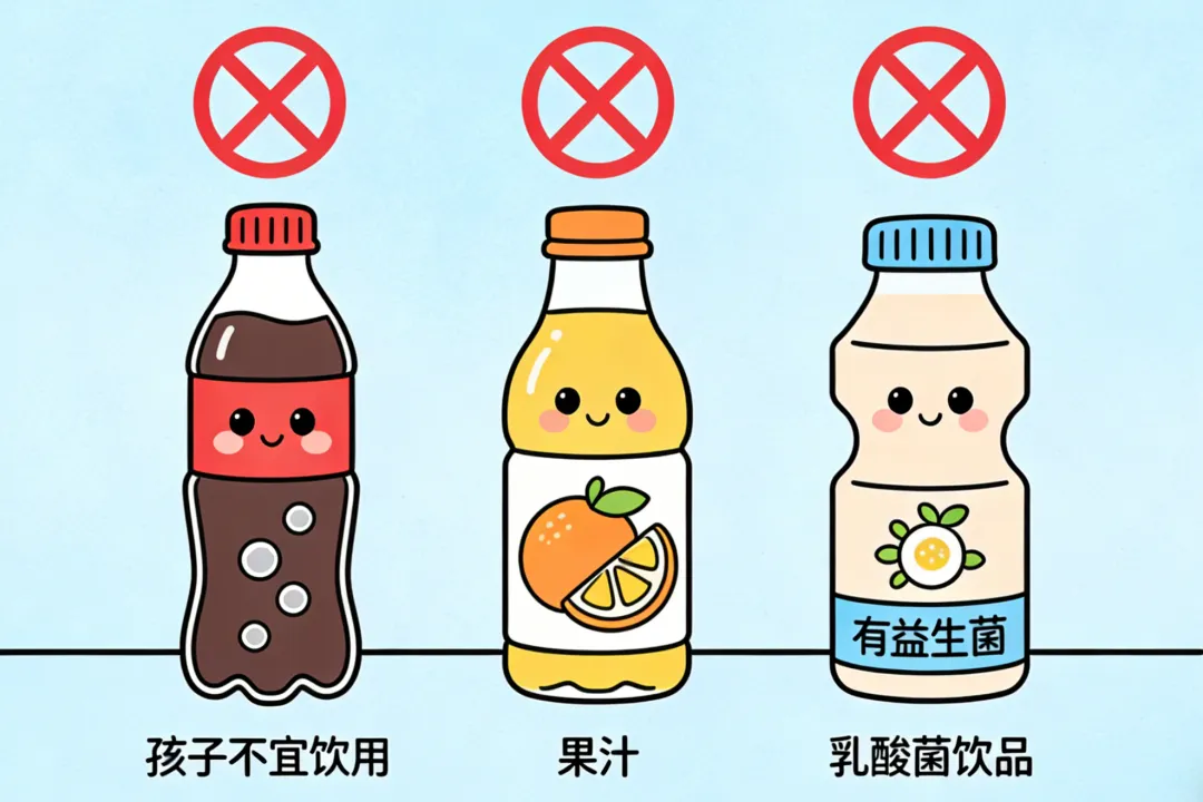 • ❌ 少喝:碳酸饮料、果汁、乳酸菌饮料(含糖量极高)。