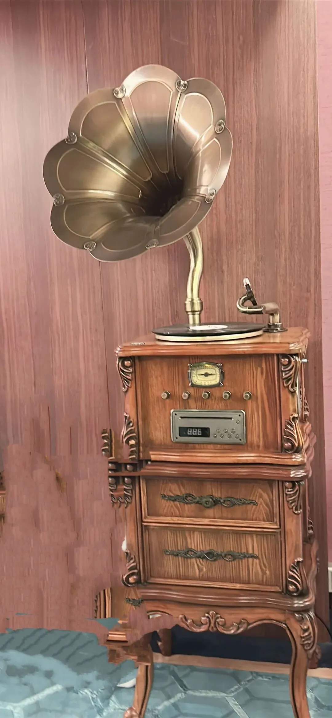 推门而入的瞬间,闹市的喧嚣被轻轻隔在门外。一眼入心的温柔——角落里静静摆放着一台复古老唱片机,木纹温润,质感怀旧,像极了我们年轻时省吃俭用、攒了整整半年工资才抱回家的那一台。