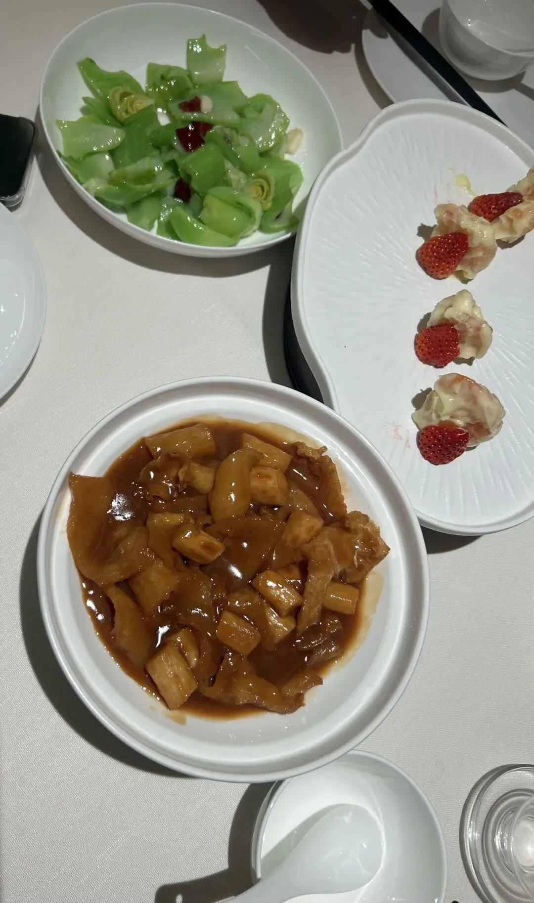 细腻绵密的豌豆黄、弹嫩入味的猪皮卷、清爽解腻的芥末卷,小巧雅致,好看又好吃;招牌罗汉大虾两两相对,裹着鲜红草莓,宛如振翅的春燕,美得让人舍不得动筷。