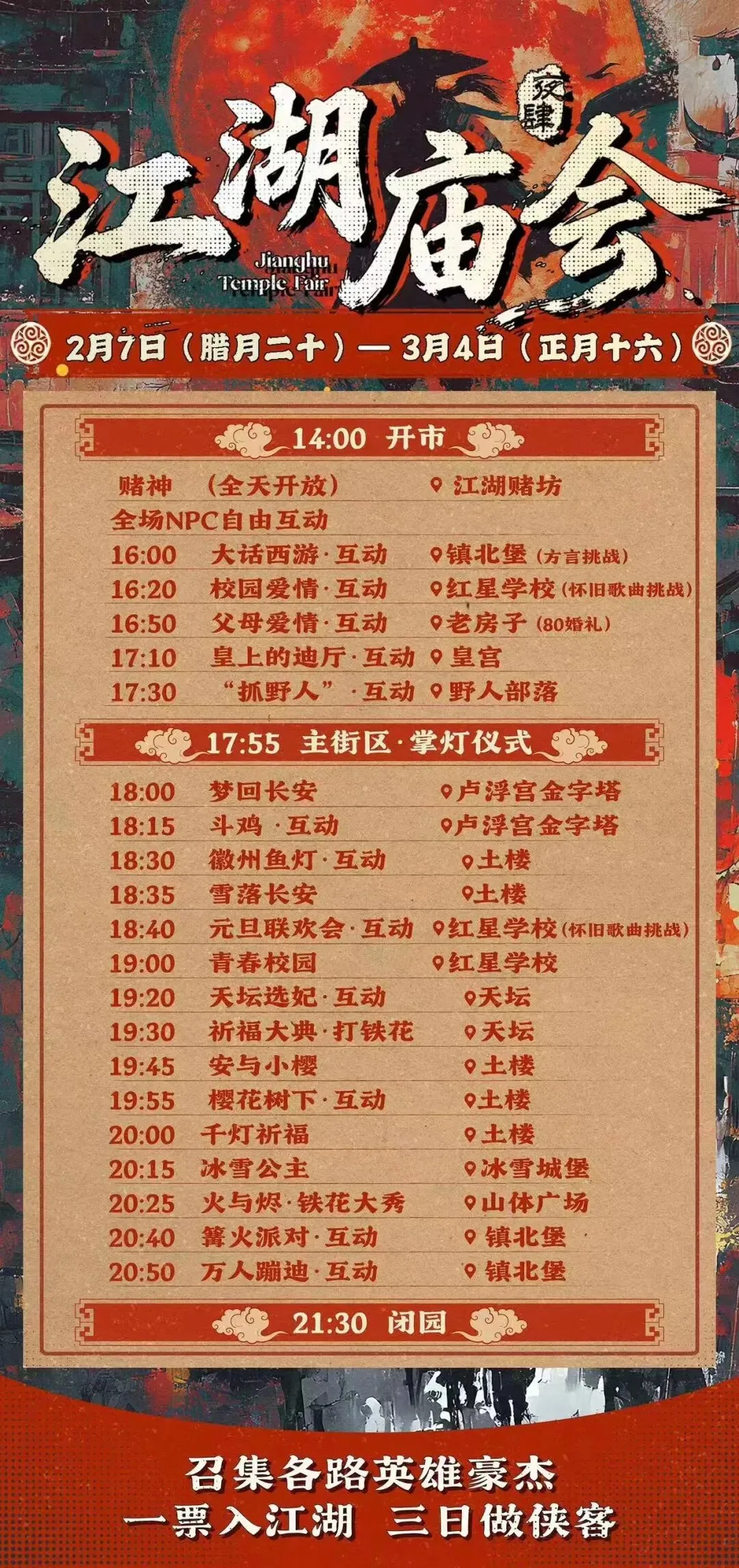 活动时间:2月7日(腊月二十)—3月4日(正月十六)