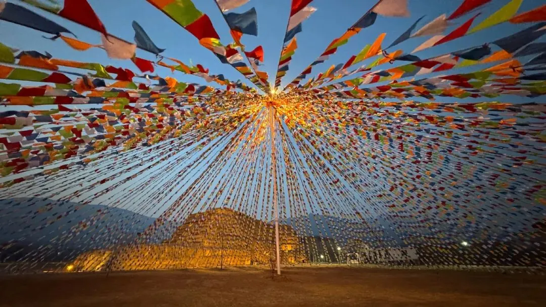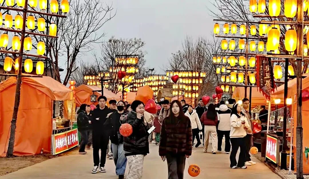 踏入夜肆石家庄的瞬间,就像穿越进了鲜活的武侠世界。漫天飞舞的大“经幡”彩条旗随风摇曳,红红火火的灯笼铺满街巷,巨型大雪人矗立在入口处,每一处角落都是绝佳的打卡点,随手一拍就是充满年味的江湖大片。