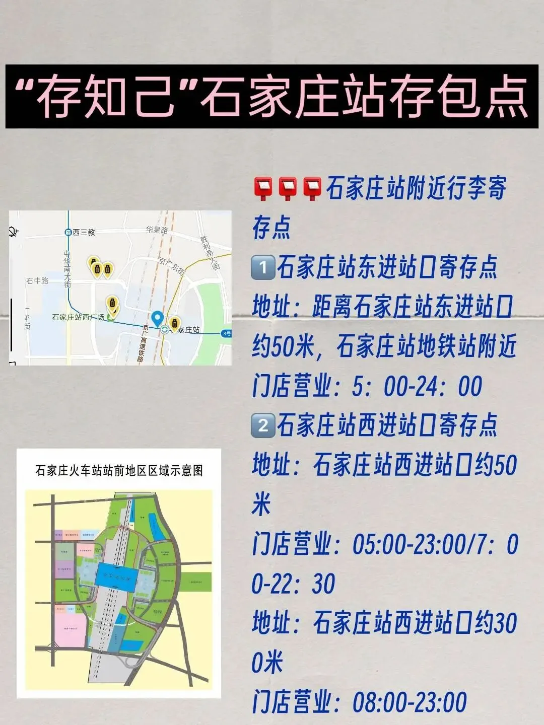 1⃣石家庄站东进站口寄存点