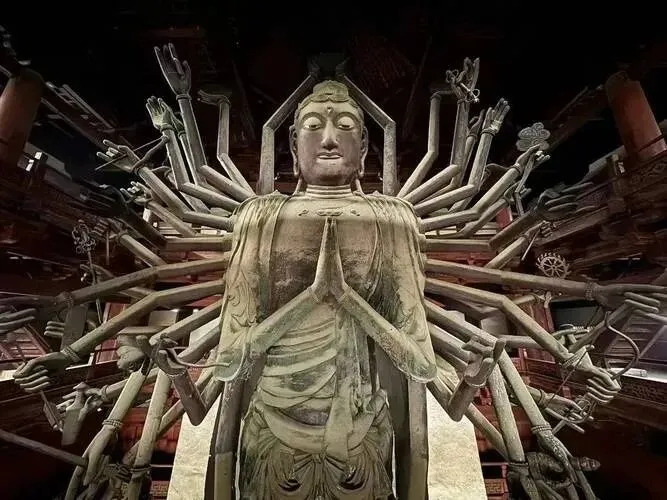 隆兴寺里的那尊铜铸千手观音,高22米,那是宋朝开国皇帝赵匡胤下令修的,几百年来就那么静静地看着人来人往。还有那被鲁迅先生称为“东方美神”的倒坐观音,你看她那个二郎腿翘得,多自在,多潇洒?
