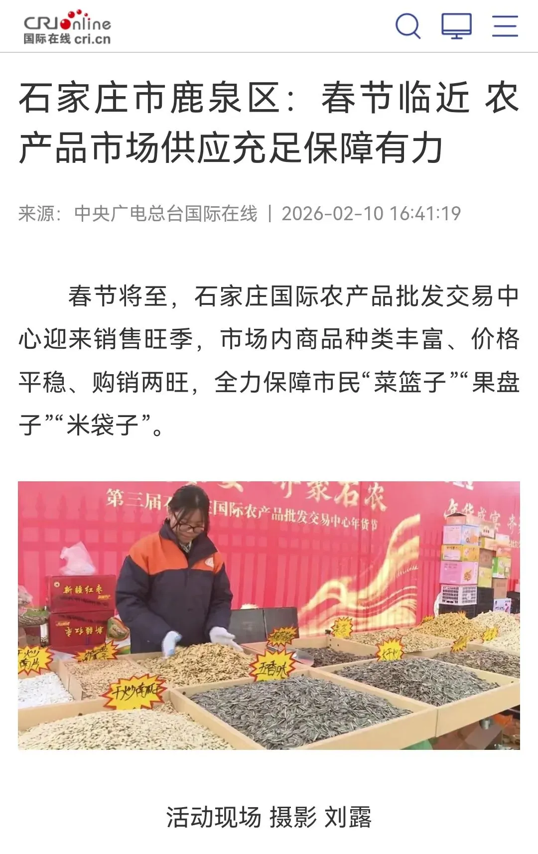 春节将至,石家庄国际农产品批发交易中心迎来销售旺季,市场内商品种类丰富、价格平稳、购销两旺,全力保障市民“菜篮子”“果盘子”“米袋子”。