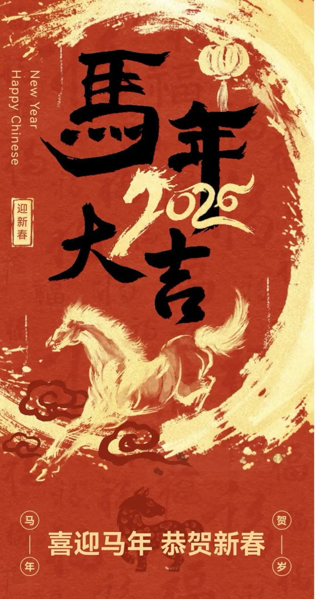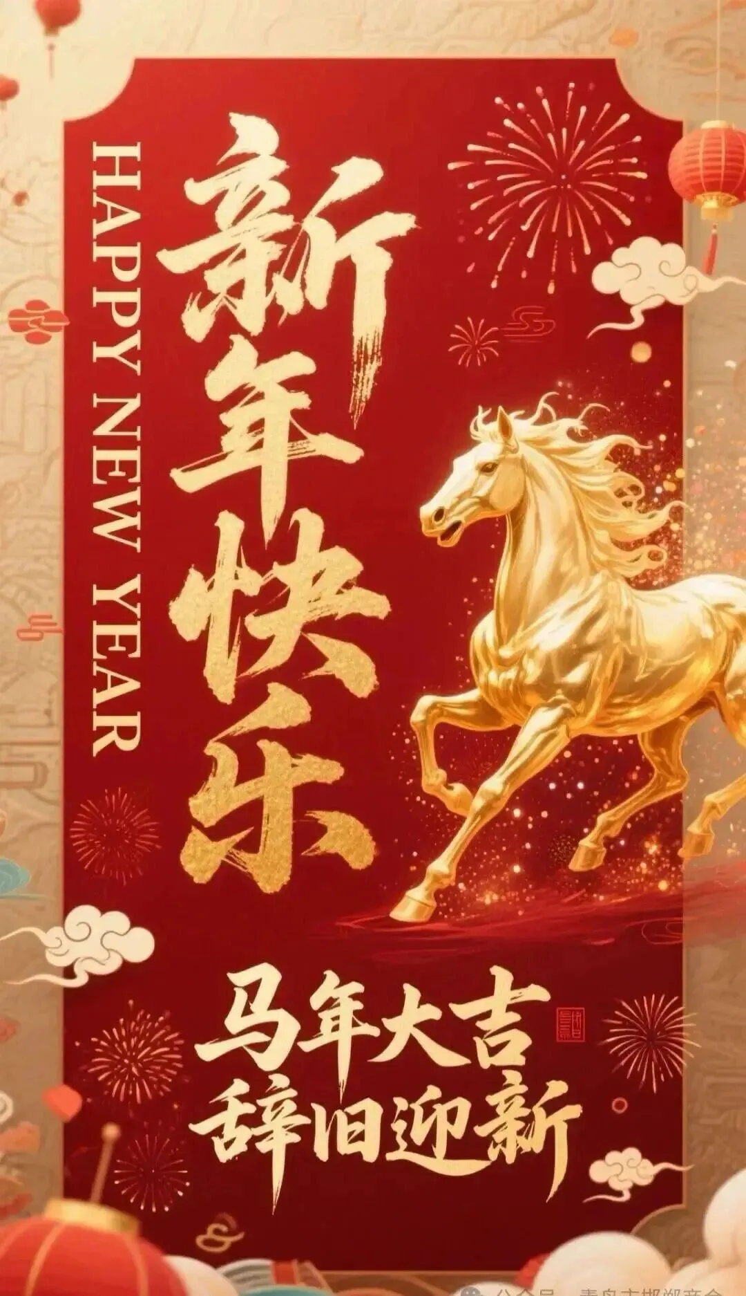 在此,祝福大家马年新春快乐!马到功成:事业路上蹄疾步稳,所求皆如愿,所行皆坦途;马上发财:财运亨通福满堂,日子红火节节高;万马奔腾:心怀梦想敢闯敢拼,家国同兴事事顺。