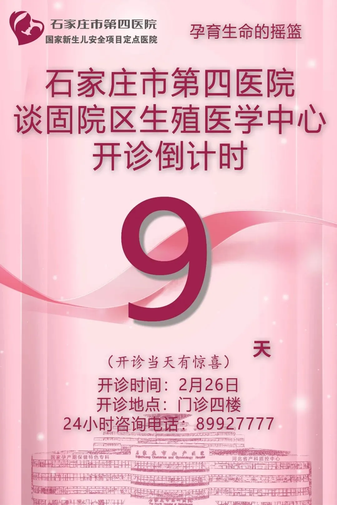 >石家庄市第四医院谈固院区生殖医学中心开诊倒计时第9天,敬请关注!
