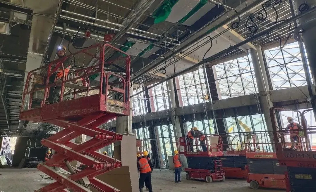 “不停工、不断档、保节点、提质效”,这是项目春节期间的攻坚目标,更是全体建设者的行动誓言。项目团队秉持“安全第一、质量至上、效率优先”理念,提前谋划、周密部署、精准施策,全方位统筹人员、物资、设备等关键要素,实现各类物资提前到位、施工设备正常运转,为春节攻坚筑牢保障;同时,严格把控每一道施工工序、紧盯每一个细节节点,靶向排查、从严整治各类施工安全隐患,健全完善施工闭环管理机制,确保施工环节无缝衔接、建设过程安全有序、工程质量经得起检验。目前,项目正处于室内外装修施工阶段,外墙保温和防水施工已全部完成,正在进行幕墙施工;室内抹灰完成,正在进行电气、通风空调安装,吊顶龙骨、墙面腻子施工;室外管网、景观道路、园林绿化正在施工。
