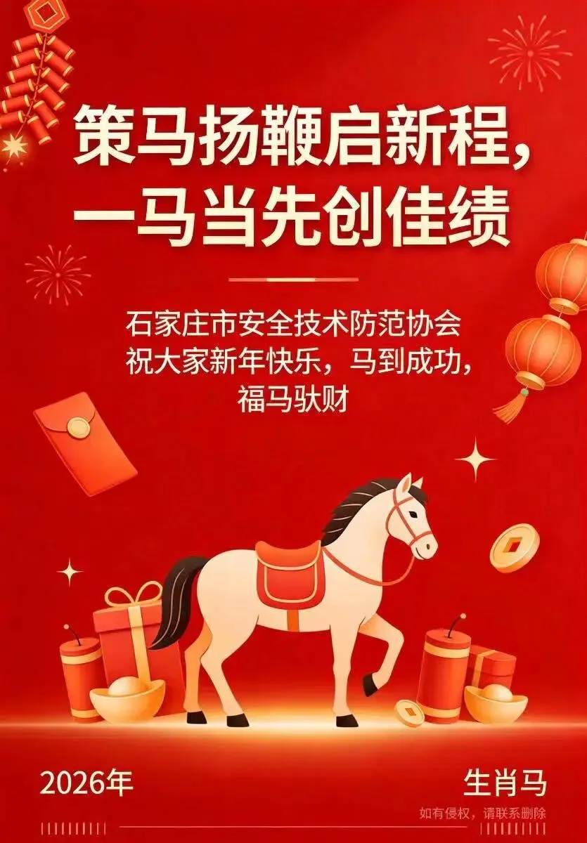 大家新年快乐!值此2026年新春佳节,石家庄市安全技术防范协会向长期关心支持协会发展的各级领导、全体会员单位以及坚守在一线的安防从业者们,致以最诚挚的问候和最美好的祝福!