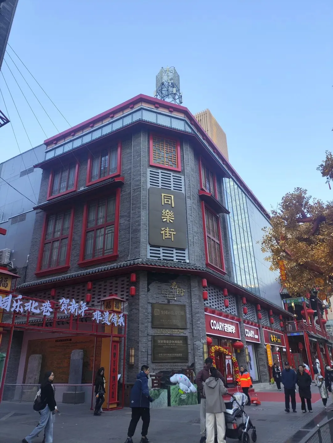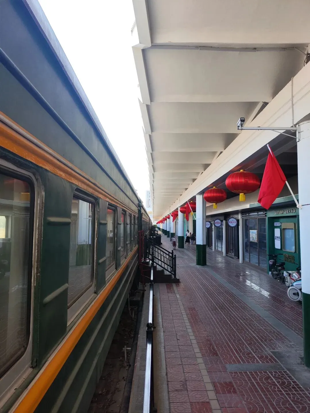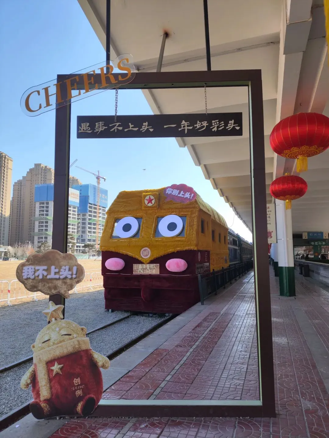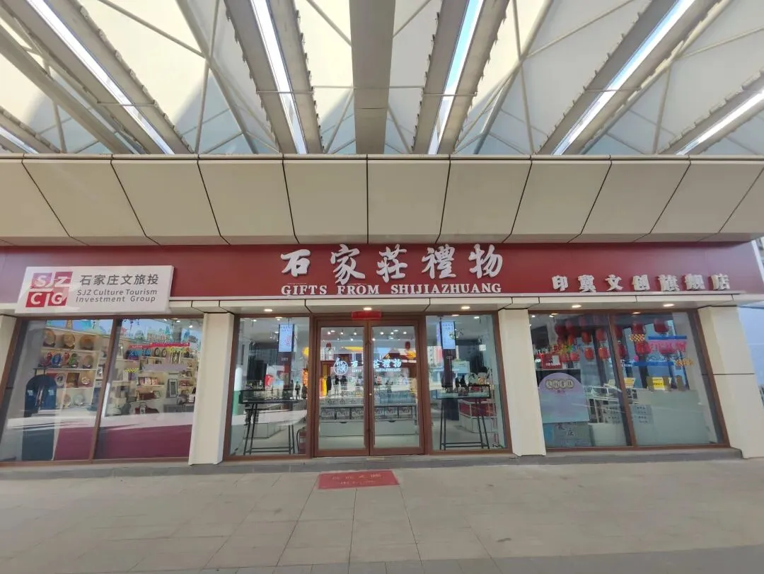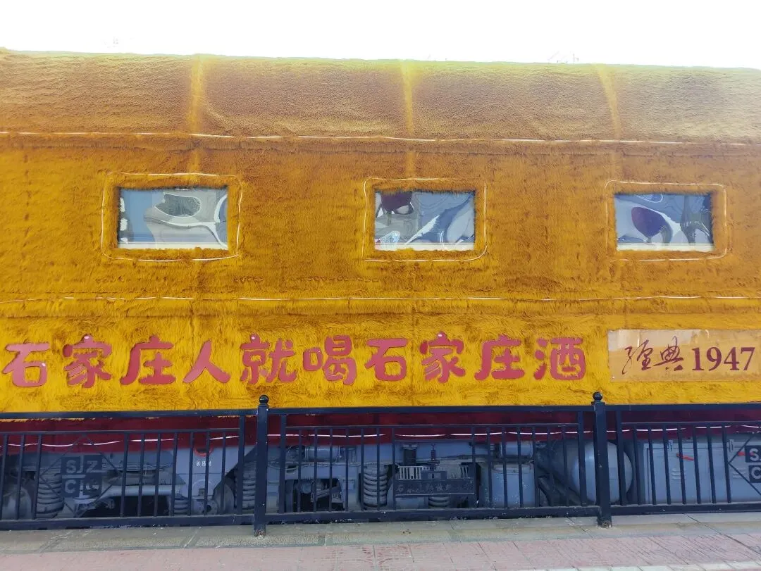火车旁边有不少店铺,原来庄里也有“石家庄礼物”店。