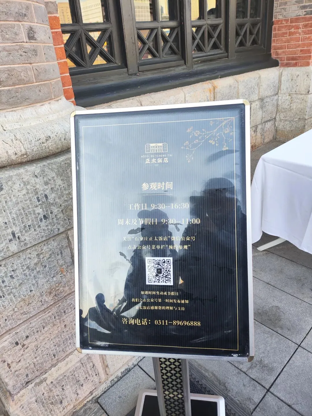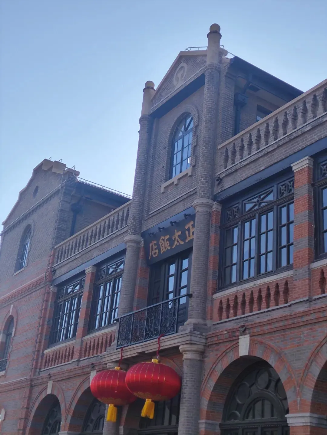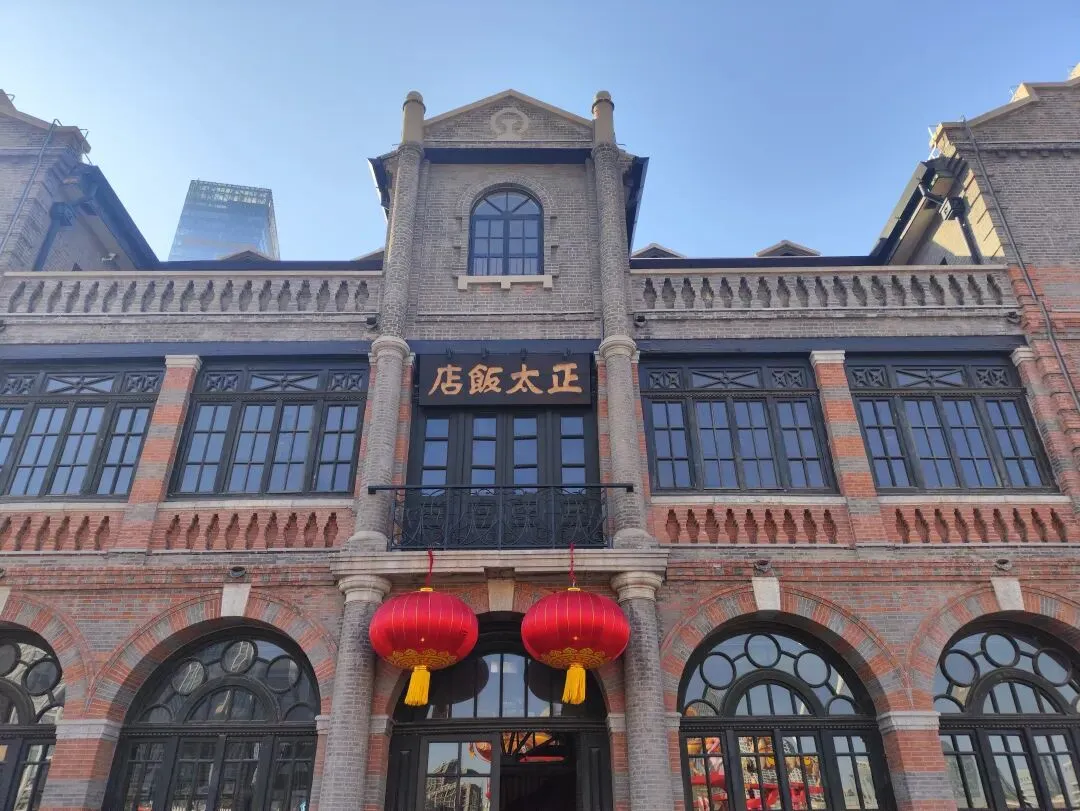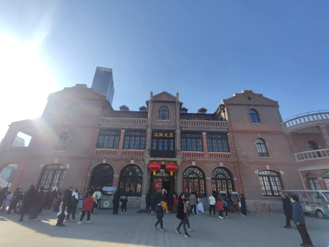 广场的核心建筑——正太饭店,门口游客很多,只可惜过了参观时间,大家没法进入。