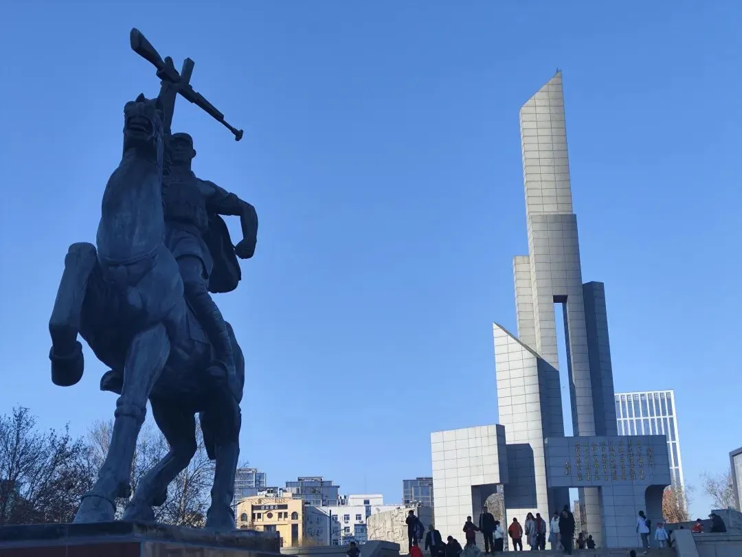 正太饭店旁边的解放纪念碑和大石桥,记录了这座城市的百年峥嵘岁月。
