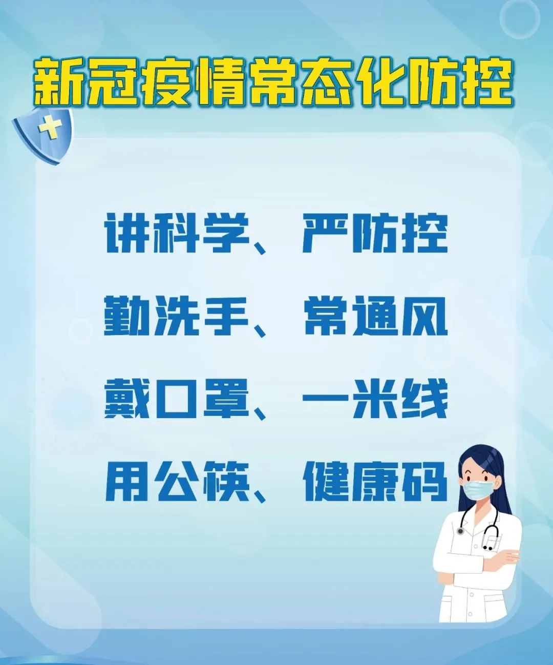 六、广大群众要继续时刻保持良好的个人防护意识,养成随身携带口罩,科学规范佩戴口罩(尤其是在乘坐公共交通工具和在公共场所活动时)、勤洗手、常通风、保持安全社交距离的卫生习惯;不扎堆、不聚会,倡导健康生活方式。