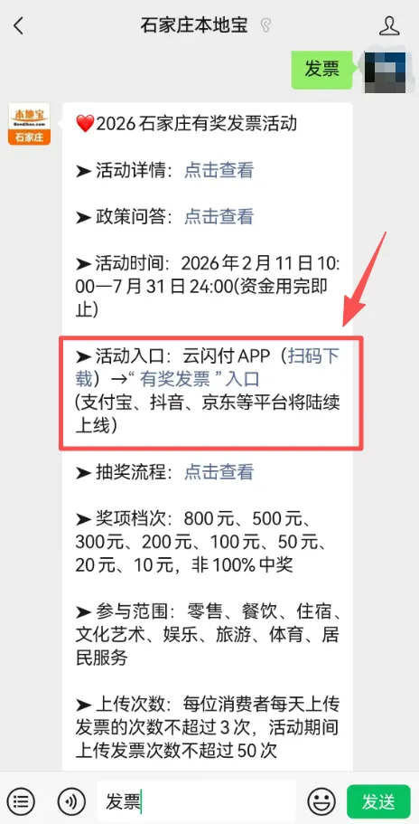 ✅也可关注【石家庄本地宝】公众号,私信回复【发票】,即可获取抽奖入口、活动详情、活动问答等。