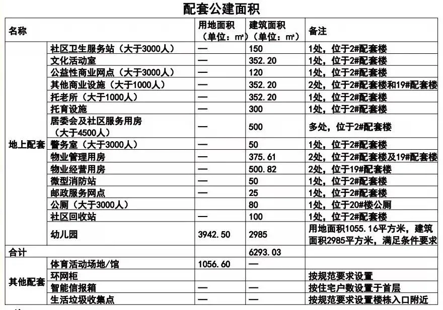 配套公建面积如下↓