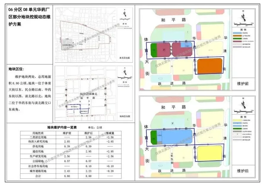 此外,还公示了石家庄两大地块改造控规方案,涉及华药厂区、西三庄。