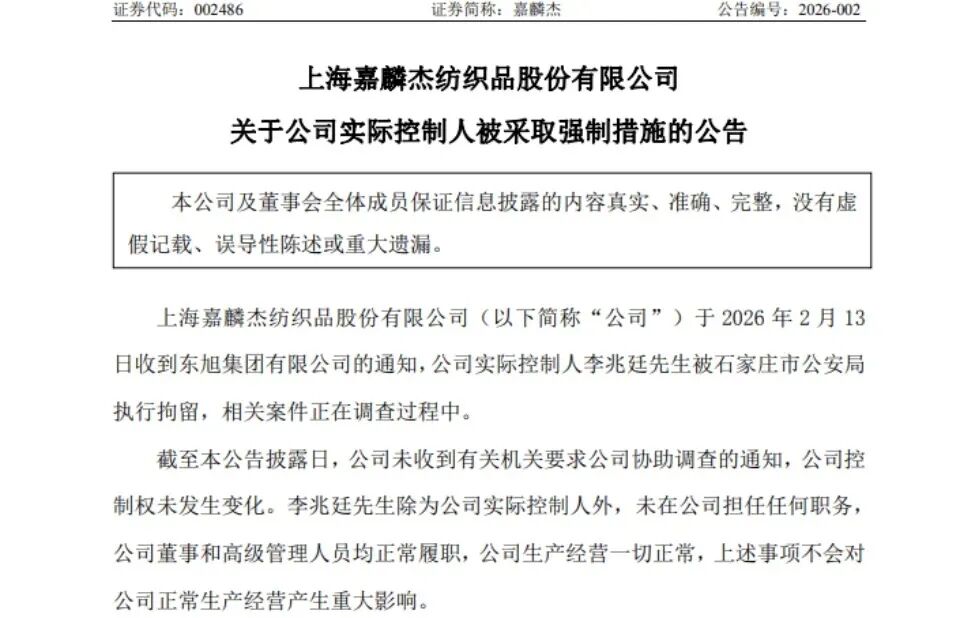 更何况,实控人涉嫌犯罪,往往伴随着股权的冻结、拍卖。一旦李兆廷的资产进入司法处置程序,嘉麟杰的控股权大概率会易主。到时候,公司的经营战略、管理层会不会发生地震?这都是未知数。