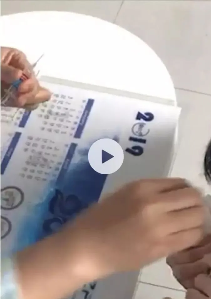 家长录像显示的注射器贴纸上,红色部分里明确可见两行白色字体。