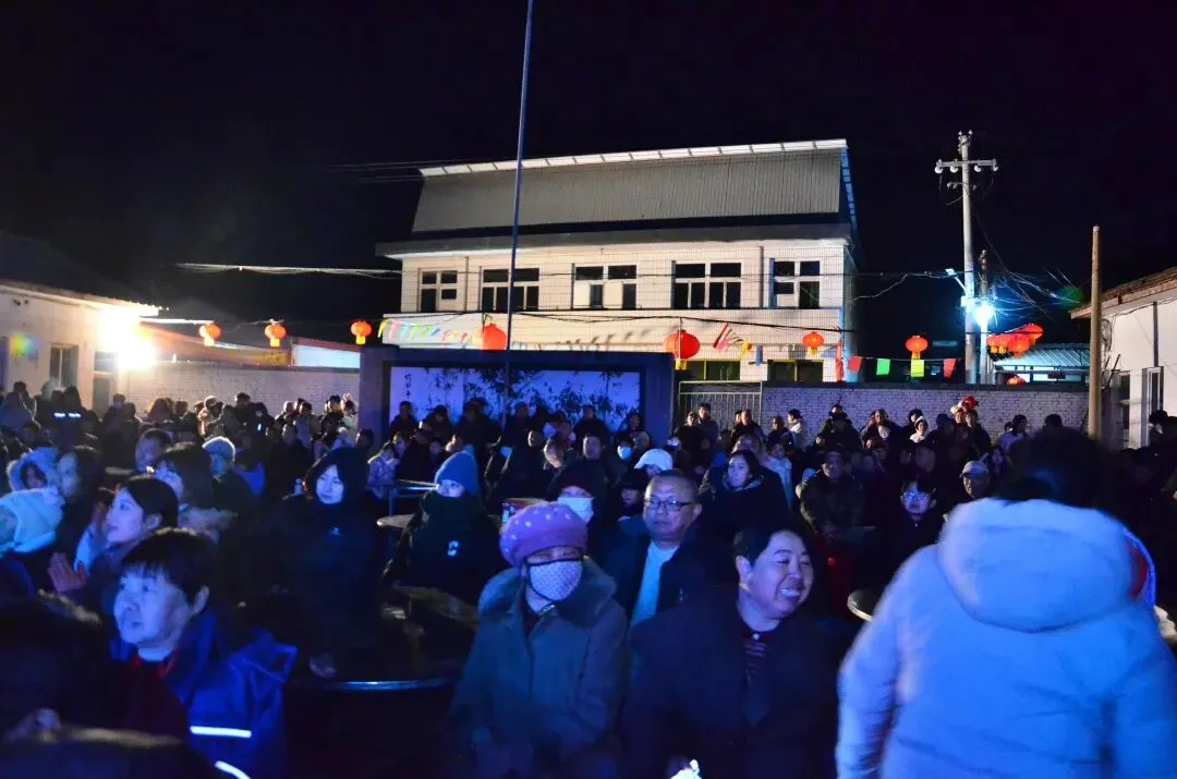 村民们围坐在一起,舞台上的红绸翻飞,孩子们在人群中嬉戏,整个晚会热闹又温馨
