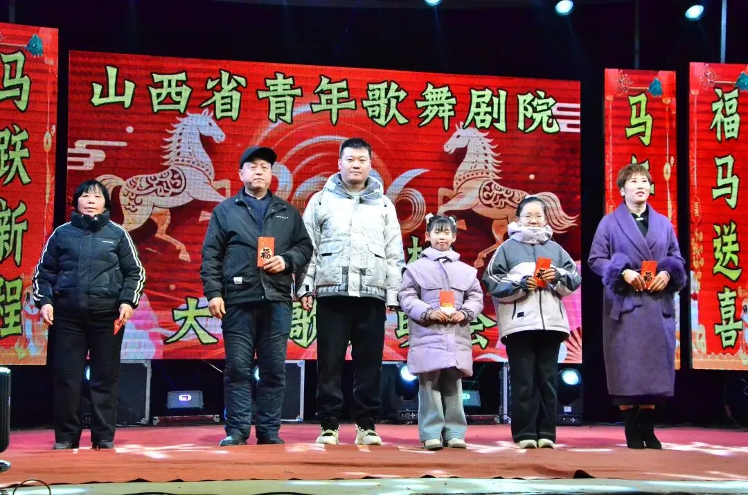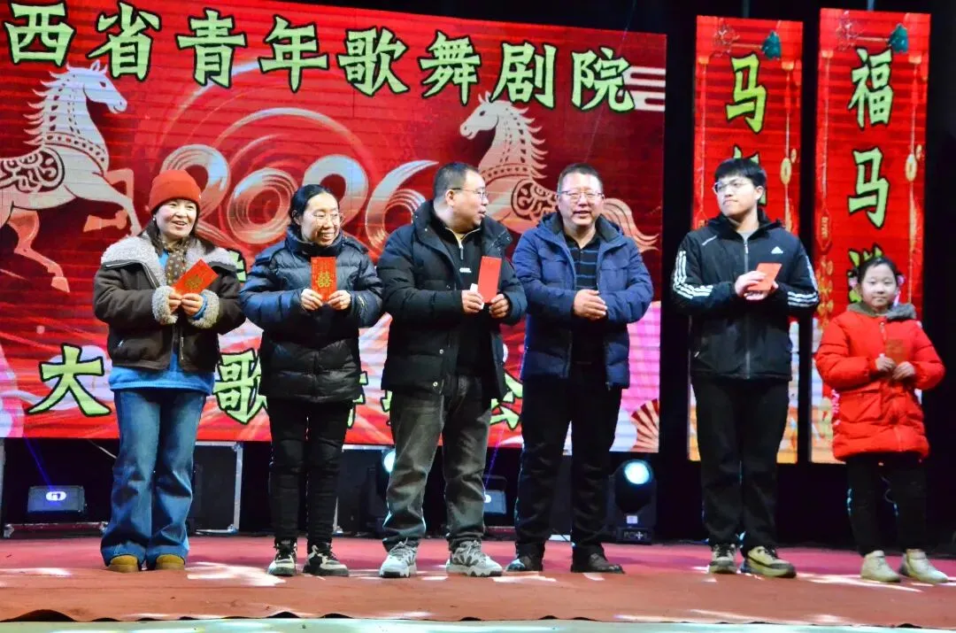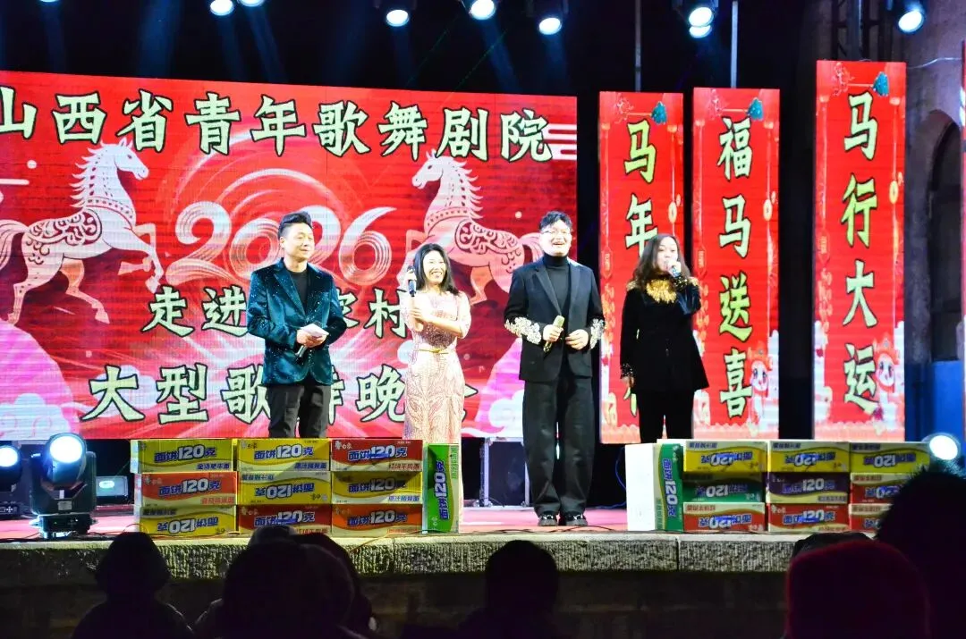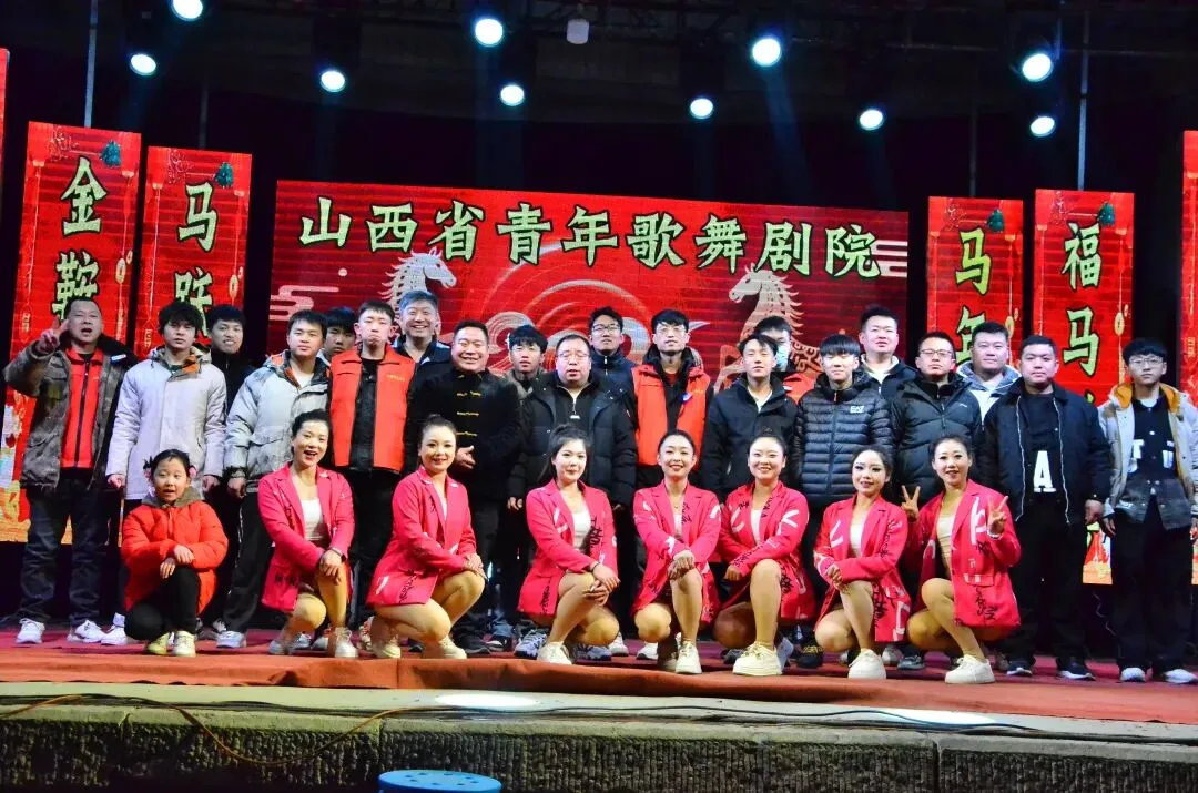 是山西省青年歌舞剧院的迎新春文艺活动,演员们合影留念志愿者陈家村