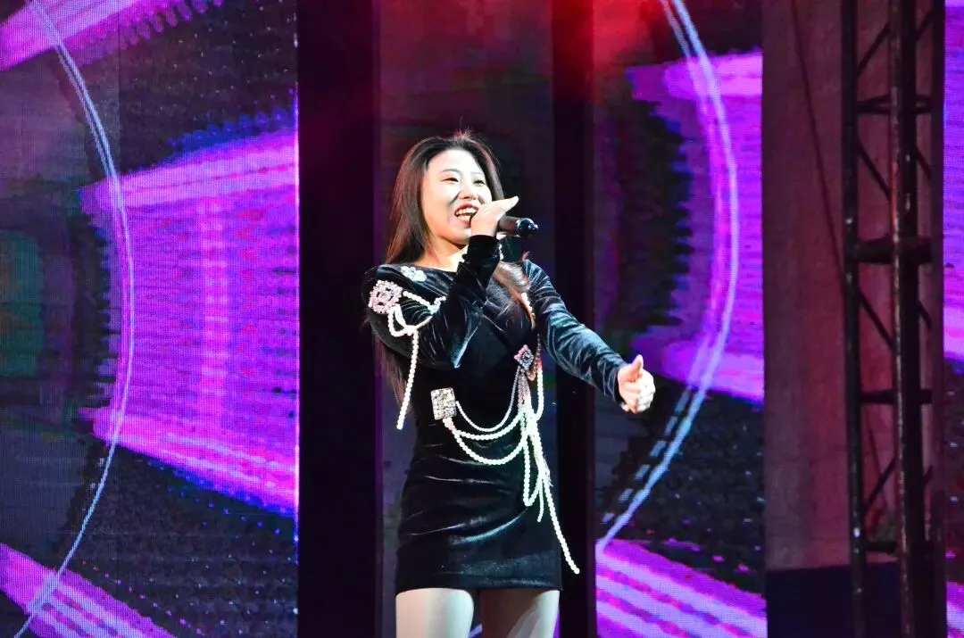 这位女歌手在舞台上这位女歌手在,笑容灿烂,
