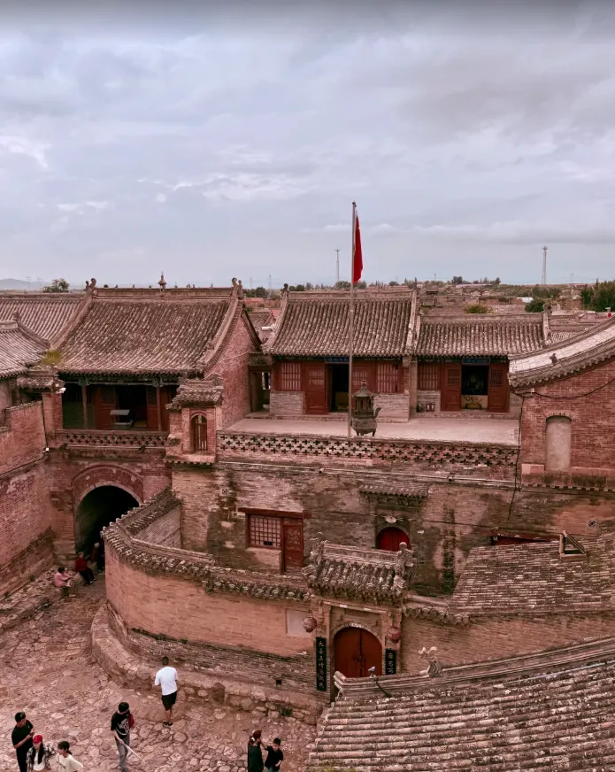 风绕古塔,墙上残漆,剪纸的红透进门楣,像在说“别急,坐会儿”。
