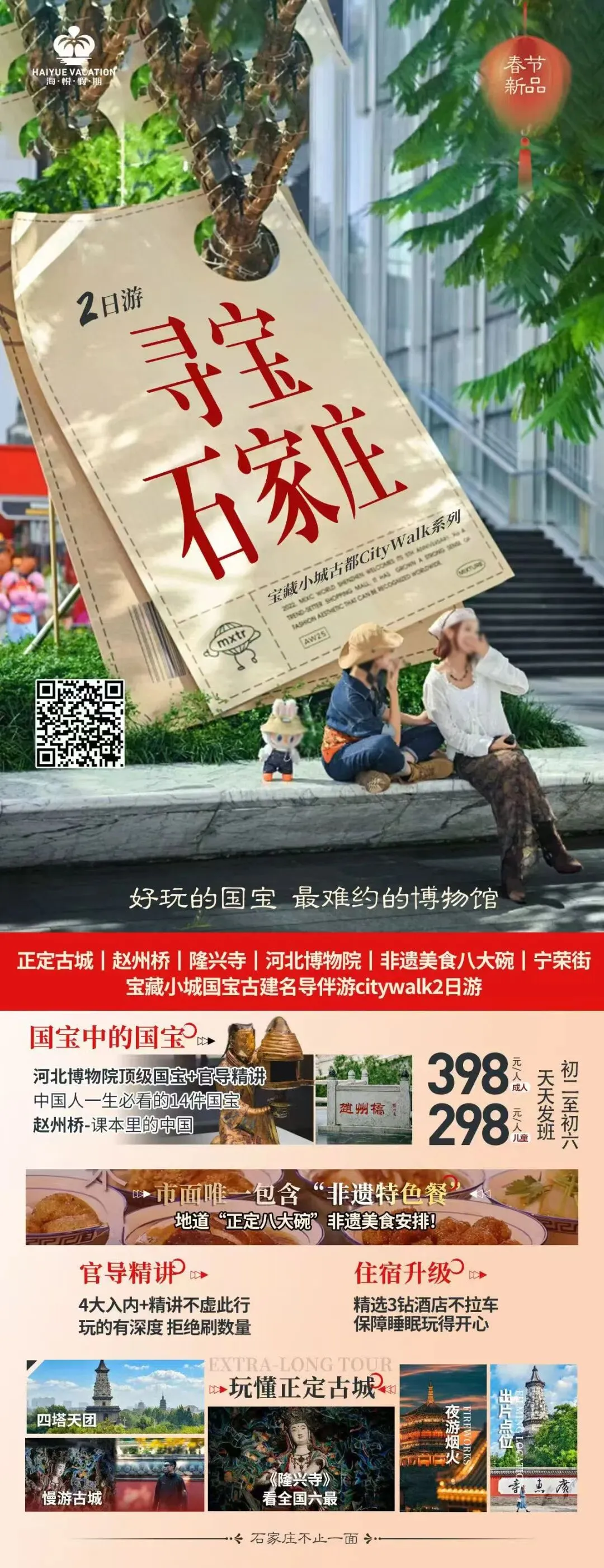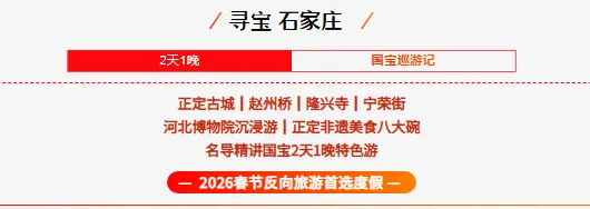 前往石家庄→【赵州桥】→【正定古城】→【隆兴寺】→忆红楼【宁荣街】→非遗美食中餐【正定八大碗】→夜游【正定古城】→入住指定酒店能量早餐→【河北省博物院】看十四件国宝→返回温馨的家Day1 出发--赵州桥