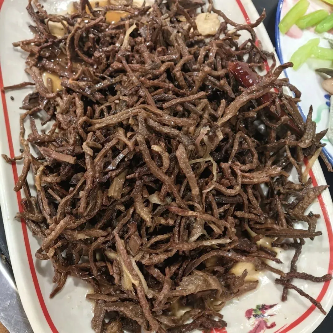 正定还有一道“名字唬人,味道真香”的特色菜——崩肝。作为老一辈人的下酒神器,它以新鲜黄牛肝为原料,去筋膜、蒸熟、切丝、炸制,再用葱姜花椒爆炒,成品色泽酱红,口感紧实,越嚼越香,酱香浓郁中带着肝子的醇厚,一口酒一口崩肝,便是正定人最惬意的时光。