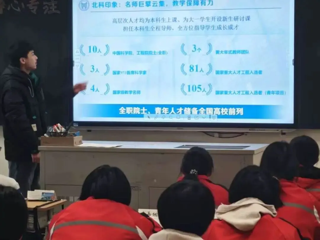 专属的宣讲教室内,面向高三理科重点班的分享正精彩开讲。