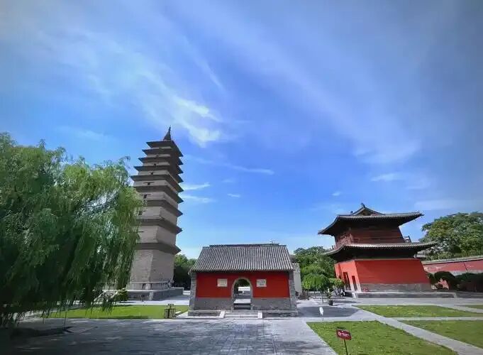 临济寺塔远看像一支笔,风吹过,塔影落在城墙根,拍起来不费劲。