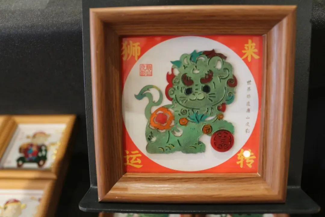 源自河间明亮玻璃吹制技艺的玻璃制品更是亮点十足:少女心满满的樱花浮雕杯,以立体浮雕工艺定格春日繁花,堪称颜值担当;而马卡龙渐变条纹杯,色彩柔和、触手温润,清新感拉满。传统皮影也焕新出圈,金色葫芦、青绿山水、憨萌小狮子(寓意“狮来运转”),让古老技艺潮趣十足。