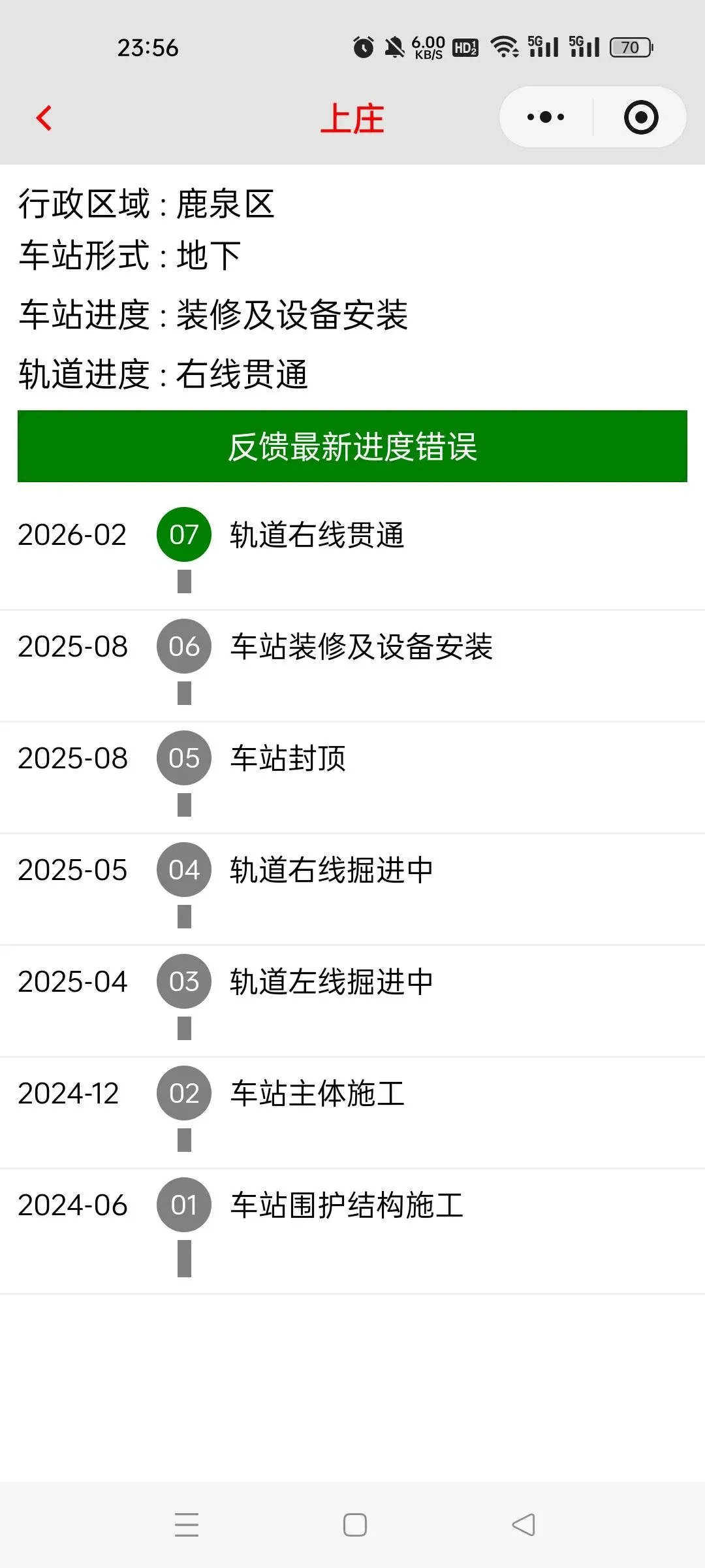 石家庄地铁1号线三期进度跟踪(2026-02)