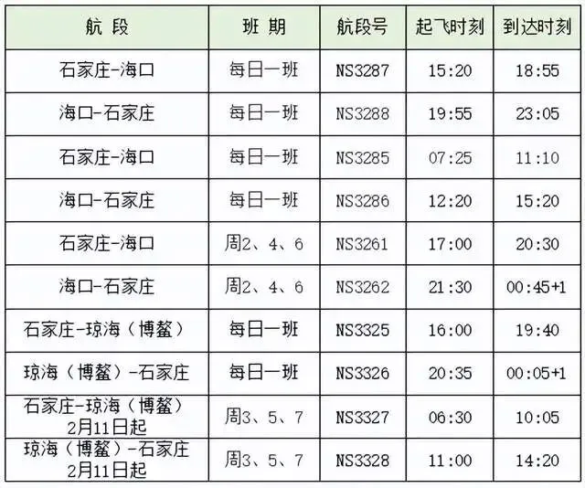 石家庄-海口、石家庄-琼海:围绕海南旅游热,方便旅客直达海南东部,为旅客提供更丰富的海南游选择。