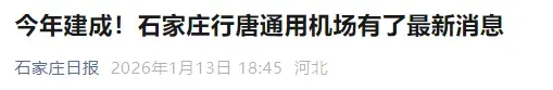 此外、为迎接春节出行高峰满足广大旅客探亲、旅游需求,春秋航空春运新开石家庄至沈阳的每日直飞航线(航班号9C6953/6954),于2026年2月11日至3月1日期间执行(具体请以春秋航空官方渠道查询为准)。每日计划22:20自石家庄起飞,次日00:05抵达沈阳,为华北与东北之间的新春探亲与旅游搭建起更便捷的空中桥梁。2026年,我省将建成行唐通用机场,开工建设秦皇岛北戴河机场改造等项目。据悉,我省在交通基础设施领域将开展世界级机场群协同发展攻坚行动,其中,将加强全省运输机场布局优化,构建干支衔接、通勤便捷的航空服务网络,建成石家庄正定国际机场三期改扩建等项目,旅客、货邮吞吐能力分别达到2980万人次、24.9万吨,基本建成辐射全球、衔接高效、通达全国的世界级机场群。 石家庄行唐通用机场项目