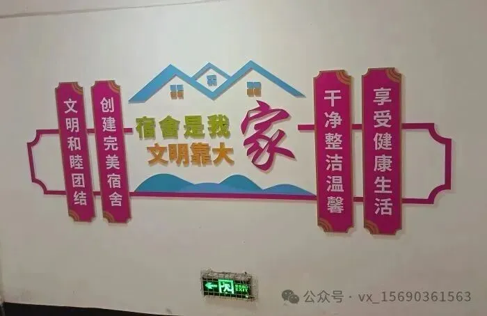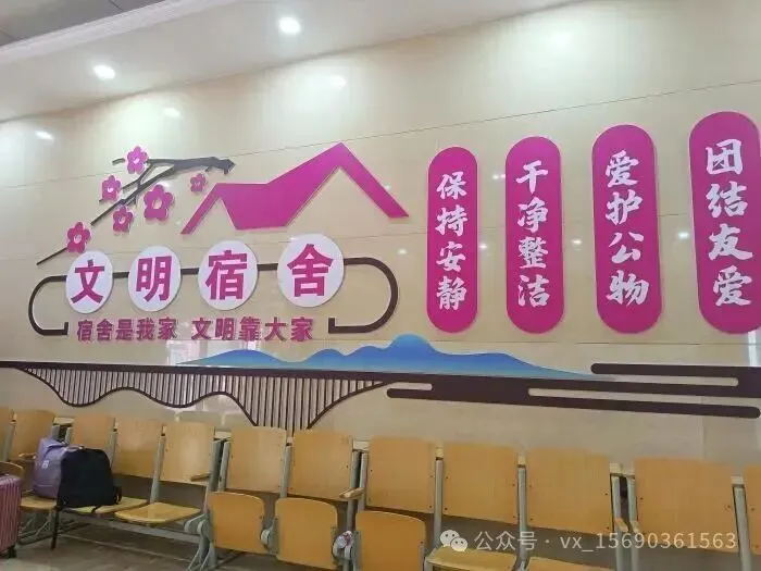 “宿舍是我家,文明靠大家”,关于宿舍卫生方面,宿舍的公共区域由学生宿舍服务员负责打扫;各寝室内由室内学生负责打扫;学生寝室坚持每日轮流值日清扫卫生的制度;学校的宿舍领导小组每周五定期检查一次,学生宿舍每月检查两次。每月评比一次,检查、评比结果纳入“文明寝室”的评比活动中,并专栏公布。