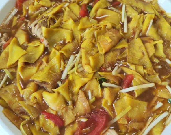 醋溜饹馇:这道菜是本地人的心头好。饹馇切成菱形块,下油锅炸到金黄酥脆捞出。锅里留底油,爆香葱姜蒜,倒进去一碗由醋、糖、酱油、淀粉调好的芡汁。汁一粘稠,把炸好的饹馇倒进去快速翻炒,撒点蒜苗出锅。外焦里嫩,酸甜口,一口咬下去,那是咯吱咯吱的响。