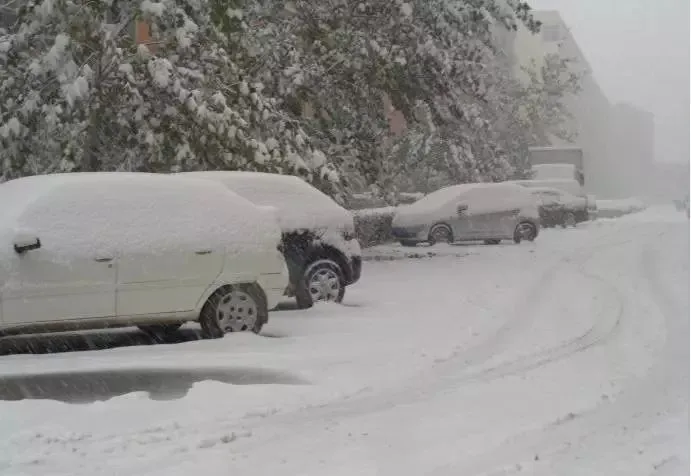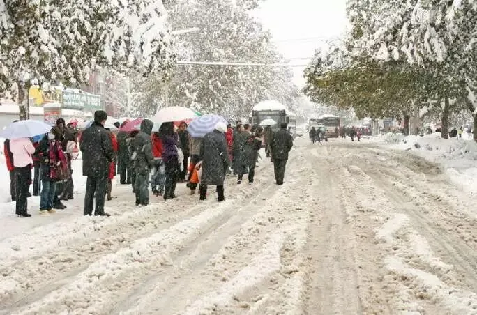 当时的石家庄街头,风大雪狂路难行!暴雪打在脸上,根本睁不开眼睛,漫天暴雪中,无法前行的车辆排起了长队。