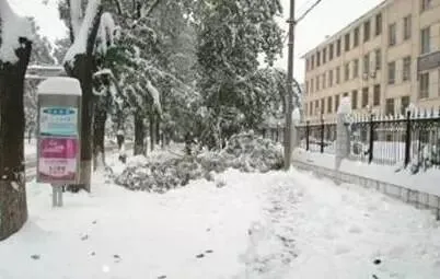 大雪重压之下伏地的大树和踯躅如蜗牛的车辆就是当时石家庄街头最最平常的景象。